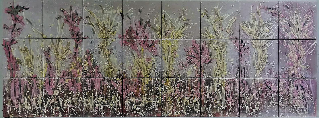Posiciona os recipientes sobre a bancada, aplica a cor de base e tudo se perde, tudo se amplia. Adiciona outros pigmentos aos líquidos, resgata potinhos e esmaltes não queimados, testados para outras temperaturas e se atira. Arrepio, medo e gozo mas não loucura, sabe exatamente onde vai chegar, no meio de um espaço líquido, oceânico.